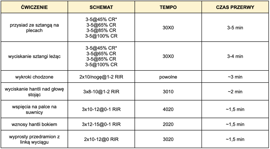 CR to Twój ciężar roboczy, czyli obciążenie, którym robisz swoją najcięższą, zwykle ostatnią serię.